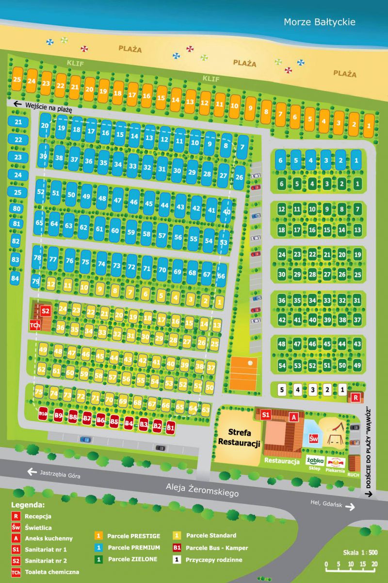 Parcela Premium zapewnia poczucie komfortu oraz prywatności. Jest ogrodzona drzewostanem, który wyznacza dokładne granice parceli. Koszt parceli zawiera cenę postoju: jednego samochodu + jednej przyczepy kempingowej wraz z przedsionkiem oraz jednego przyłącza prądu.